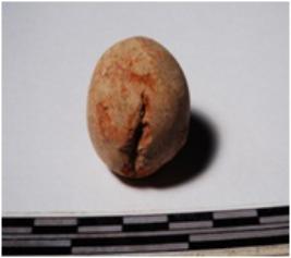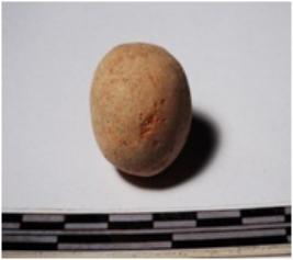 | Description / विवरण | A terracotta sling ball round in shape profile of smooth surface. |