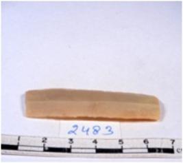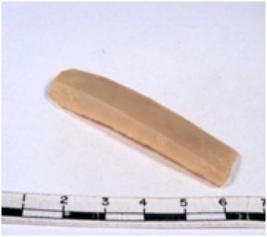 | Description / विवरण | A fragment of a rectangular shaped chert blade showing parallel sides with sharp cutting edges having smooth surface and triangular section. |