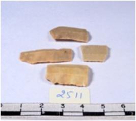 | Description / विवरण | A fragment of a rectangular shaped chert blade showing dorsal sides with sharp edges having smooth surface and triangular section. |