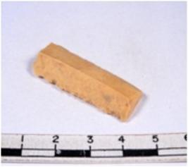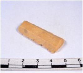 | Description / विवरण | A fragment of a rectangular shaped chert blade showing parallel sides with sharp edges having smooth surface and triangular section. |