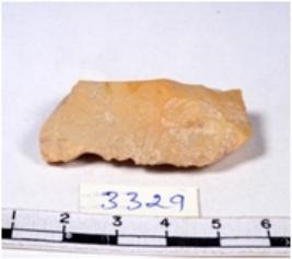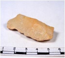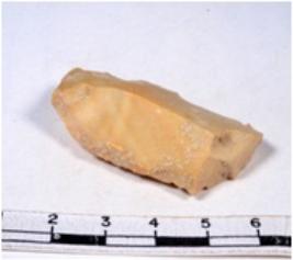 | Description / विवरण | A fragment of a rectangular shaped chert blade showing dorsal sides with sharp edges having smooth surface and triangular section. |