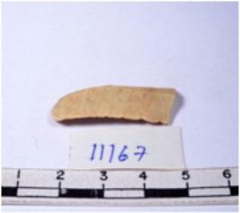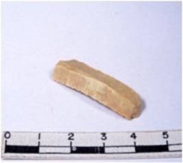 | Description / विवरण | A fragment of a rectangular shaped chert blade showing dorsal sides with sharp edges having smooth surface and triangular section. |