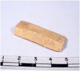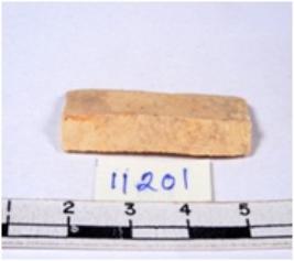 | Description / विवरण | A fragment of a rectangular shaped chert blade showing dorsal sides with sharp edges having smooth surface and triangular section. |