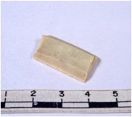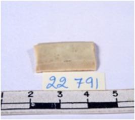 | Description / विवरण | A fragment of a rectangular shaped chert blade showing dorsal sides with sharp edges having smooth surface and triangular section. |