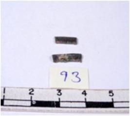 | Description / विवरण | A fragment of a rectangular shaped chert blade showing dorsal sides with sharp edges having smooth surface and triangular section. |