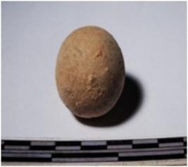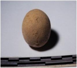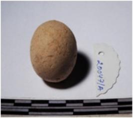 | Description / विवरण | A terracotta sling ball round in shape of smooth surface. |