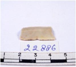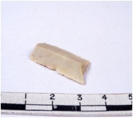 | Description / विवरण | A fragment of a rectangular shaped chert blade showing dorsal sides with sharp edges having smooth surface and triangular section. |