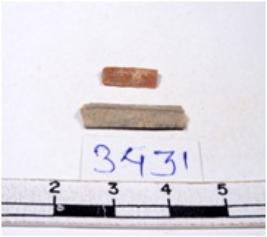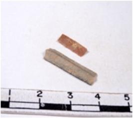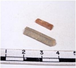 | Description / विवरण | A fragment of a rectangular shaped chert blade showing dorsal sides with sharp cutting edges having smooth surface and triangular section. |