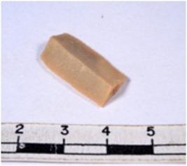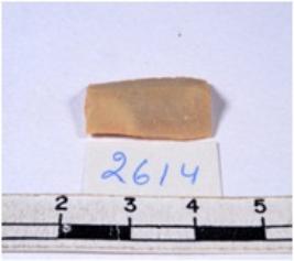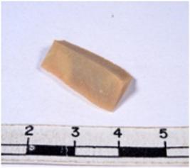 | Description / विवरण | A fragment of a rectangular shaped chert blade showing dorsal sides with sharp edges having smooth surface and triangular section. |