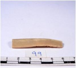 | Description / विवरण | A fragment of a rectangular shaped chert blade showing parallel sides with sharp edges having smooth surface and uneven section. |
