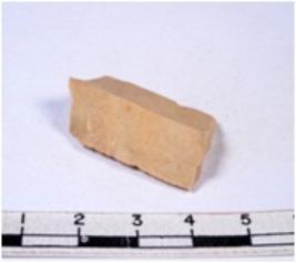 | Description / विवरण | A fragment of a rectangular shaped chert blade showing dorsal sides with sharp cutting edges having smooth surface and triangular section. |