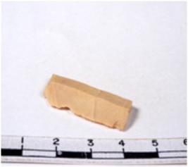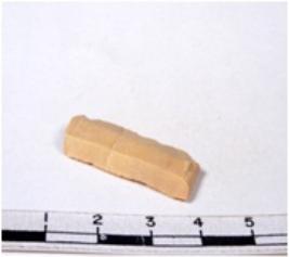 | Description / विवरण | A fragment of a rectangular shaped chert blade showing parallel sides with sharp cutting edges having smooth surface and triangular section. |