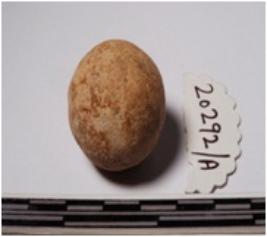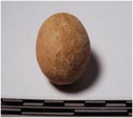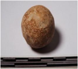 | Description / विवरण | A terracotta sling ball round in shape of smooth surface. |
