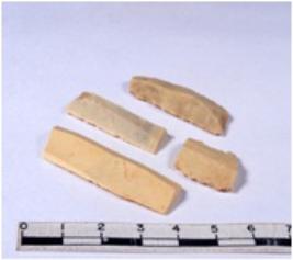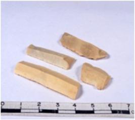 | Description / विवरण | A fragment of a rectangular shaped chert blade showing dorsal sides with sharp edges having smooth surface and triangular section. |
