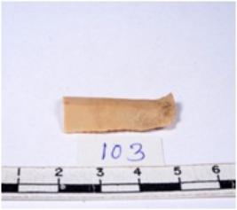 | Description / विवरण | A fragment of a rectangular shaped chert blade showing dorsal sides with sharp edges having smooth surface and triangular section. |