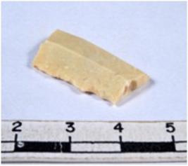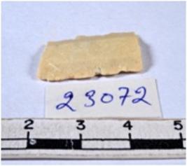 | Description / विवरण | A fragment of a rectangular shaped chert blade showing parallel sides with sharp cutting edges having smooth surface and uneven section. |