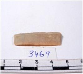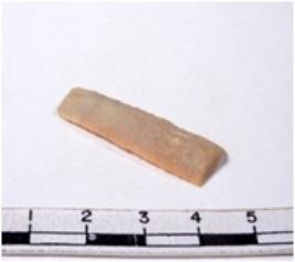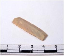 | Description / विवरण | A fragment of a rectangular shaped chert blade showing dorsal sides with sharp edges having smooth surface and triangular section. |
