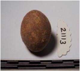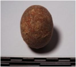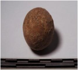 | Description / विवरण | A terracotta round in shaped sling ball of smooth surface. |
