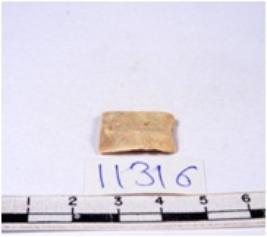 | Description / विवरण | A fragment of a rectangular shaped chert blade showing dorsal sides with sharp edges having smooth surface and triangular section. |
