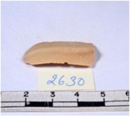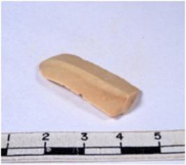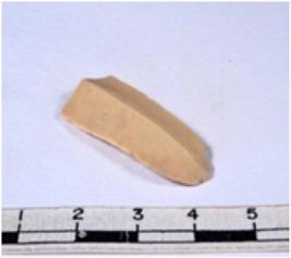 | Description / विवरण | A fragment of a rectangular shaped chert blade showing dorsal sides with sharp edges having smooth surface and triangular section. |