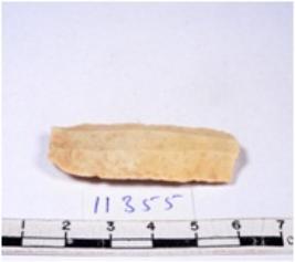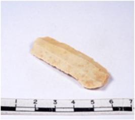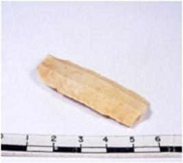 | Description / विवरण | A fragment of a rectangular shaped chert blade showing dorsal sides with sharp cutting edges having smooth surface and triangular section. |