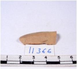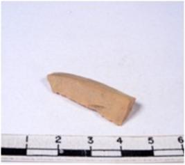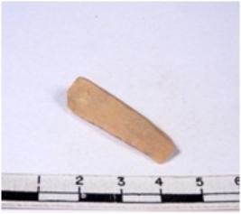 | Description / विवरण | A fragment of a rectangular shaped chert blade showing dorsal sides with sharp cutting edges having smooth surface and triangular section. |