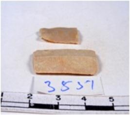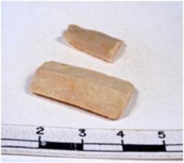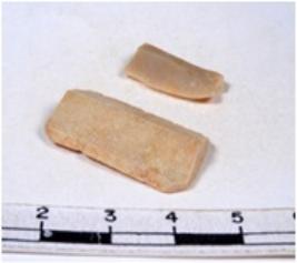 | Description / विवरण | A fragment of a rectangular shaped chert blade showing dorsal sides with sharp edges having smooth surface and triangular section. |
