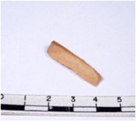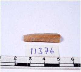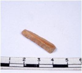 | Description / विवरण | A fragment of a rectangular shaped chert blade showing dorsal sides with sharp cutting edges having smooth surface and triangular section. |