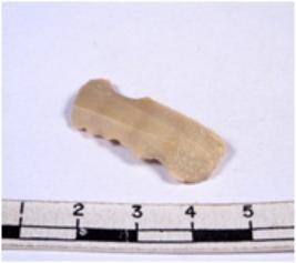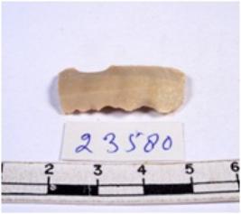 | Description / विवरण | A fragment of a rectangular shaped chert blade showing dorsal sides with sharp edges having smooth surface and triangular section. |