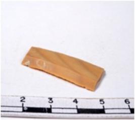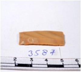 | Description / विवरण | A fragment of a rectangular shaped chert blade showing parallel sides with sharp edges having smooth surface and uneven section. |