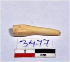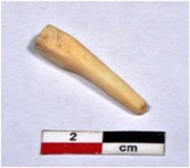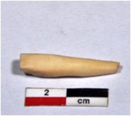 | Description / विवरण | A fragment of shell point showing long conical in shaped, broken from one end, having fine surface. |
