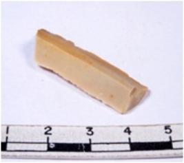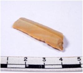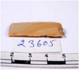 | Description / विवरण | A fragment of a rectangular shaped chert blade showing dorsal sides with sharp edges having smooth surface and triangular section. |