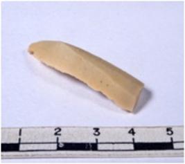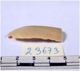 | Description / विवरण | A fragment of a rectangular shaped chert blade showing dorsal sides with sharp edges having smooth surface and triangular section. |