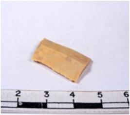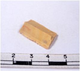| Description / विवरण | A fragment of a rectangular shaped chert blade showing dorsal sides with sharp edges having smooth surface and triangular section. |
