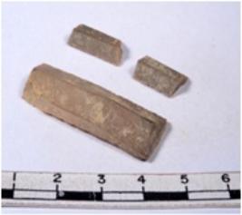 | Description / विवरण | A fragment of a rectangular shaped chert blade showing dorsal sides with sharp edges having smooth surface and triangular section. |