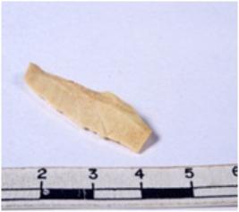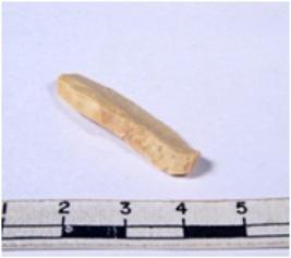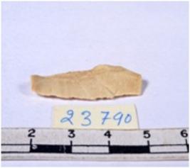 | Description / विवरण | A fragment of a rectangular shaped chert blade showing dorsal sides with sharp edges having smooth surface and triangular section. |