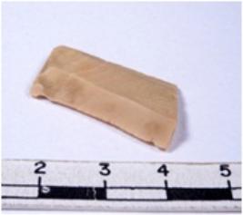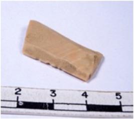 | Description / विवरण | A fragment of a rectangular shaped chert blade showing dorsal sides with sharp cutting edges having smooth surface and triangular section. |