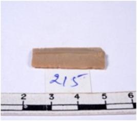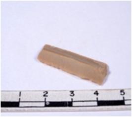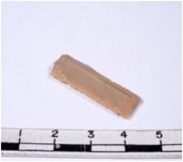 | Description / विवरण | A fragment of a rectangular shaped chert blade showing dorsal sides with sharp edges having smooth surface and triangular section. |
