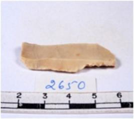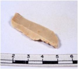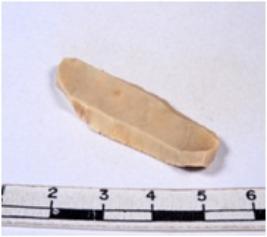 | Description / विवरण | A fragment of a rectangular shaped chert blade showing dorsal sides with broken edges having smooth surface and triangular section. |