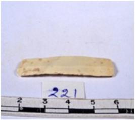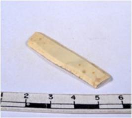 | Description / विवरण | A fragment of a rectangular shaped chert blade showing parallel sides with sharp edges having smooth surface and triangular section. |