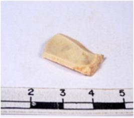 | Description / विवरण | A fragment of a rectangular shaped chert blade showing dorsal sides with sharp edges having smooth surface and triangular section. |