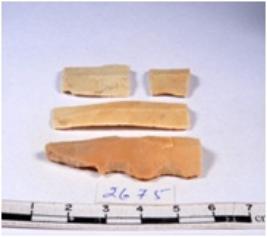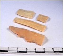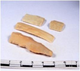 | Description / विवरण | A fragment of a rectangular shaped chert blade showing dorsal sides with sharp cutting edges having smooth surface and triangular section. |