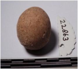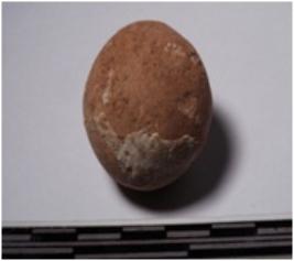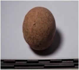 | Description / विवरण | A terracotta sling ball round in shape of smooth surface. |