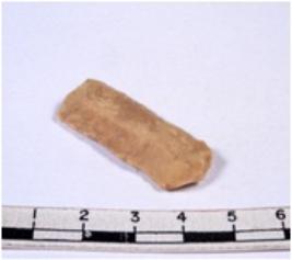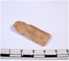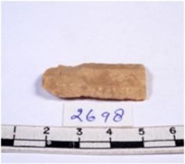| Description / विवरण | A fragment of a rectangular shaped chert blade showing dorsal sides with sharp cutting edges having smooth surface and triangular section. |