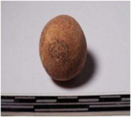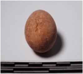 | Description / विवरण | A terracotta sling ball round in shape of smooth surface. |