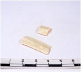 | Description / विवरण | A fragment of a rectangular shaped chert blade showing dorsal sides with sharp cutting edges having smooth surface and triangular section. |