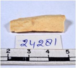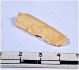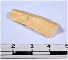 | Description / विवरण | A fragment of a rectangular shaped chert blade showing dorsal sides with sharp cutting edges having smooth surface and triangular section. |