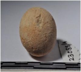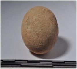 | Description / विवरण | A terracotta sling ball, round in shaped and smooth surface. |