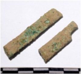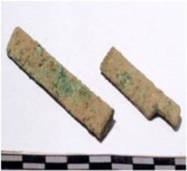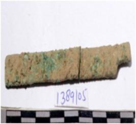 | Description / विवरण | A fragment of a copper knife rectangular in shape one edge sharpen of rough surface. |
