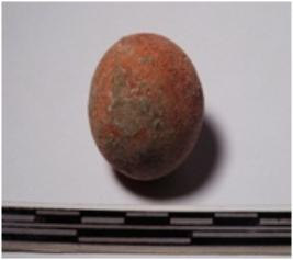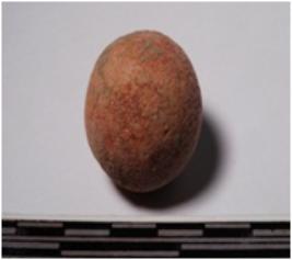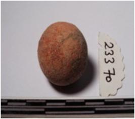 | Description / विवरण | A terracotta sling ball round in shape of smooth surface. |